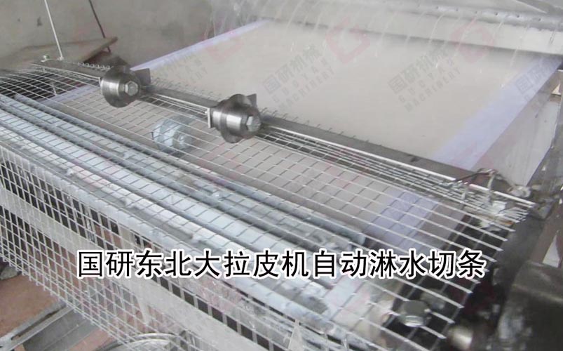 國研牌東北大拉皮機(jī)(粉皮機(jī))采用自動下漿、蒸汽蒸熟,自動淋水分離 ,自動切條、切片(根據(jù)客戶的需要訂制)。生產(chǎn)過程可不需要專人操作,自動化生產(chǎn)。生產(chǎn)的拉皮晶瑩剔透,韌性強(qiáng),口感好,生產(chǎn)效率高。每公斤淀粉可生產(chǎn)拉皮4.5-5.5公斤,該系列產(chǎn)品有多個規(guī)格,適合不同投資規(guī)模的客戶需求,辦食品加工廠,餐飲連鎖店,單位或?qū)W校食堂適用。