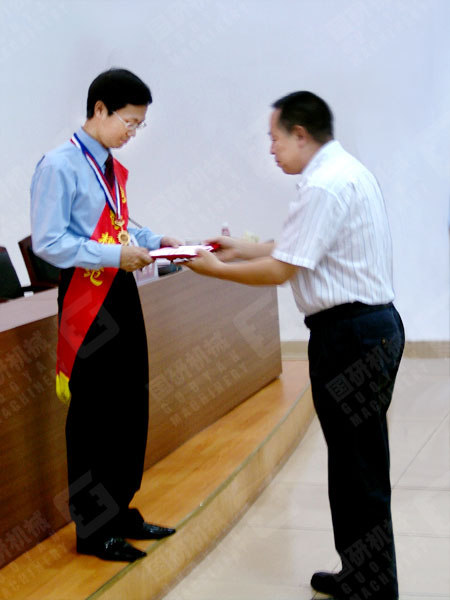 大會(huì)在莊嚴(yán)的國(guó)歌聲中拉開(kāi)了序幕。胸戴大紅花,身披綬帶的廣州市勞動(dòng)模范、國(guó)研機(jī)械市場(chǎng)部經(jīng)理劉啟剛同志受到了公司領(lǐng)導(dǎo)和全體員工的熱烈歡迎。董事長(zhǎng)兼總經(jīng)理王聲位親自為劉啟剛同志佩戴廣州市委、市政府頒發(fā)的廣州市勞動(dòng)模范獎(jiǎng)狀并頒發(fā)獎(jiǎng)金。