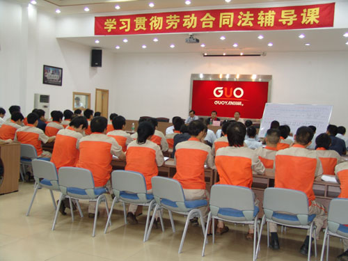 5月9日下午,廣州市國(guó)硯實(shí)業(yè)發(fā)展有限公司、廣州市國(guó)研機(jī)械設(shè)備制造有限公司在總部大會(huì)議廳舉行了聲勢(shì)浩大的學(xué)習(xí)《勞動(dòng)合同法》活動(dòng)。該活動(dòng)由公司黨支部書記、副總經(jīng)理王聲躍主持,廣東注明律師事務(wù)所——廣東德法理律師事務(wù)所、我司常年法律顧問(wèn)黃文芳主任律師擔(dān)任主講。