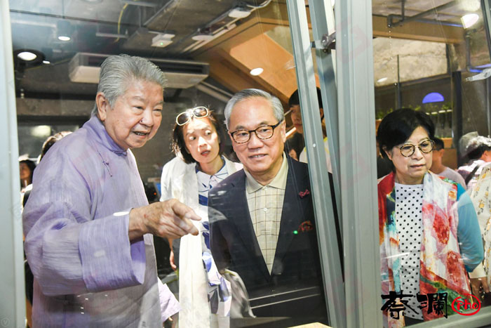 蔡瀾先生給前特首曾蔭權(quán)及到場(chǎng)嘉賓介紹國研河粉制作越南粉的過程。