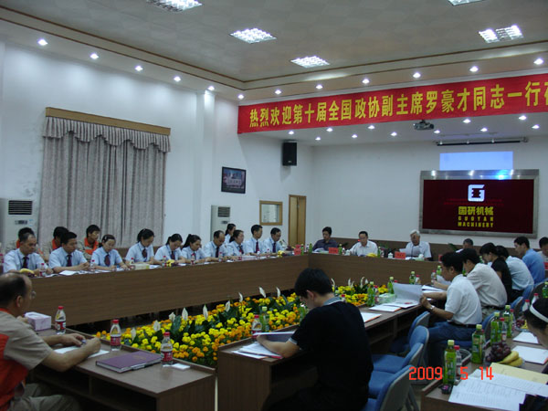 在觀看了公司發(fā)展歷程的影視片后,羅豪才副主席發(fā)表了重要講話。他說,這次廣州之行共考察了三家企業(yè),前兩家都是國有大型企業(yè),分別是廣州鋼鐵廠和廣州廣船國際股份有限公司,國研機械是我們調(diào)研的唯一一家民營企業(yè),看到你們國研人精神振奮,生產(chǎn)經(jīng)營狀況良好,尤其是看到你們外來務(wù)工人員生活、工作都比較滿意時,我們感到很欣慰,國研機械在不到十年的時間里發(fā)展成集團化的規(guī)模,而且發(fā)展勢頭很好,真的很不容易,只要你們繼續(xù)努力,企業(yè)一定能夠做強做大。目前我們國家越來越重視民營企業(yè),也越來越關(guān)心我們外來工的生存與發(fā)展的問題。你們提出了很多具有代表性的建議,這些建議提的很好,很典型,我會把這些寶貴的建議帶回去。