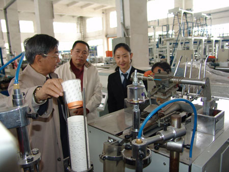 張教授一行聽(tīng)取了總經(jīng)理王聲位的匯報(bào),并在公司總經(jīng)理王聲位,副總經(jīng)理、黨支部書(shū)記王聲躍的陪同下對(duì)我司總部、塑料機(jī)械廠、食品機(jī)械廠進(jìn)行參觀指導(dǎo)。在塑料機(jī)械成品展廳,張教授在詳細(xì)了解塑料機(jī)械的生產(chǎn)工藝后,對(duì)我司塑料機(jī)器的功能頗為贊賞,對(duì)我司機(jī)器的環(huán)保性能給予了充分的肯定,并對(duì)我司產(chǎn)品的設(shè)計(jì)及發(fā)展方向提出了具體的要求和建議。