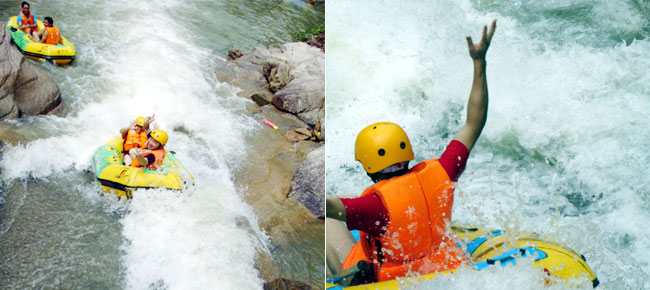 驚險(xiǎn)漂流:沖下險(xiǎn)灘、穿過水簾、飛越激浪、漂過深潭、擊水戲?!诩ち鞯淖矒粝?,歡笑尖叫,一往無前,讓大家的身心得到一次酣暢淋漓的釋放。